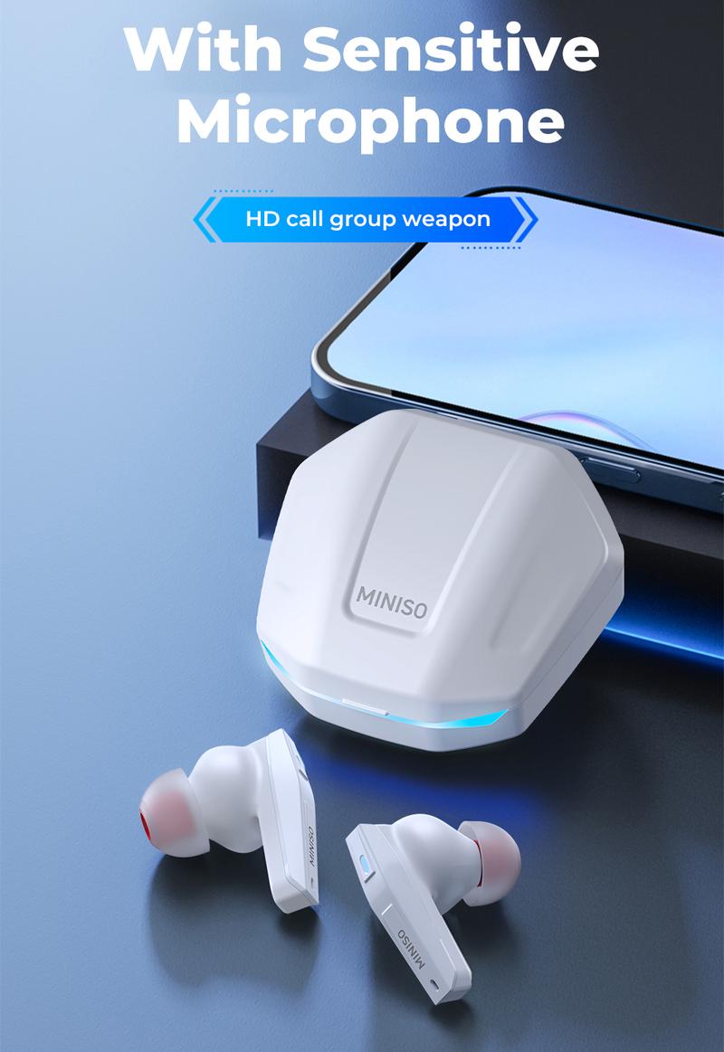 MINISO Gm2Pro Wireless Earbuds Bluetooth 5.4 Headphones, Earbuds Noise Cancelling, Energy Saving, IPX5 Waterproof with Mic, Gaming Earbuds 60 Hrs Playtime, Compatible for Android/Ios